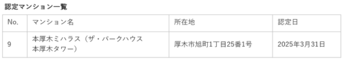 ・ザ・パークハウス本厚木タワーの認定確認はこちら
